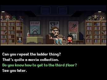 Upstairs has been carefully crafted, late at night and piece by piece, by a single developer using Unity, Adventure Creator and Aseprite.